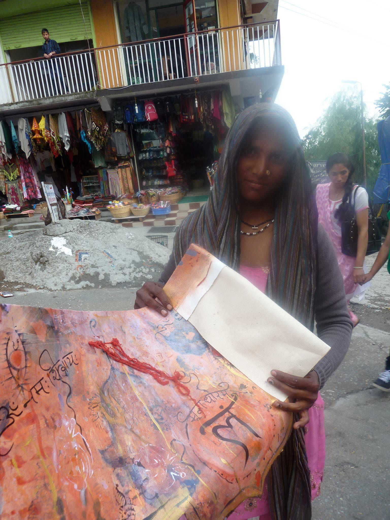Every day, this young mother had her baby with her as she laid out her hand-carved stamps on the side of the road.